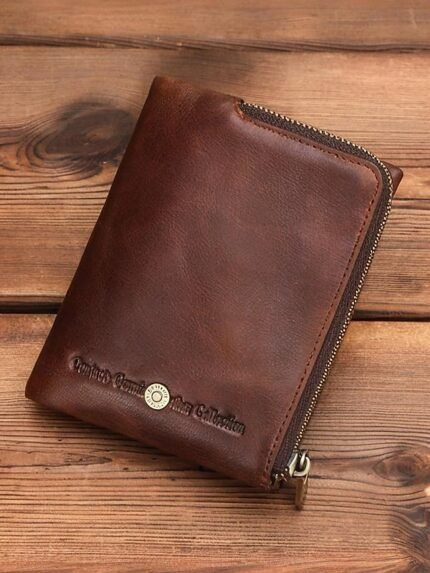 Men’s Genuine Leather Long Wallet – Vintage Bifold Clutch