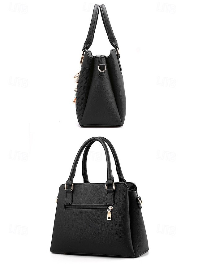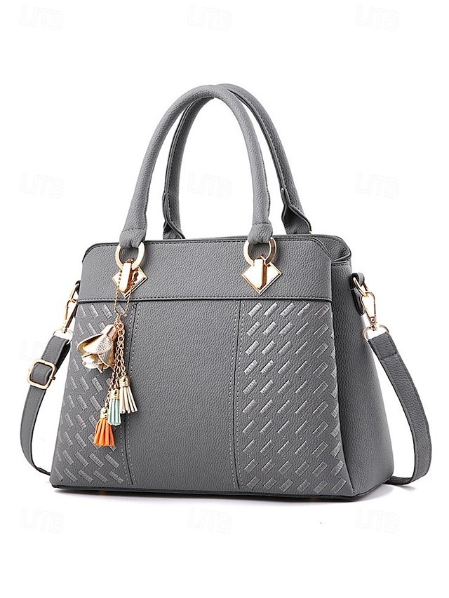 Women’s Faux Leather Handbag with Tassel Charm and Textured