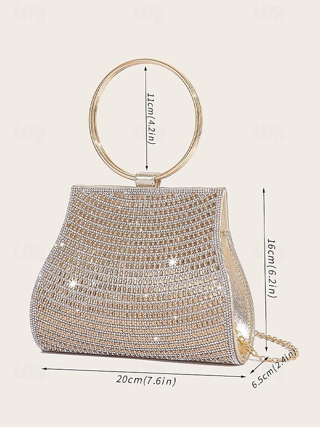 Gender: Women’s, Type: Shoulder Bags, Evening Bag, Wristlet, Material: Gretel Materials, PU Leather, Embellishment: Crystals, Chain, Sequin, Pattern: Solid Color, Detachable strap: Detachable, Adjustable strap: Non-Adjustable, Occasion: Wedding Party, Party, Width (cm): 6.5, Height (cm): 16, Length (cm): 20, Function: Multi Carry, Category: Clutch,