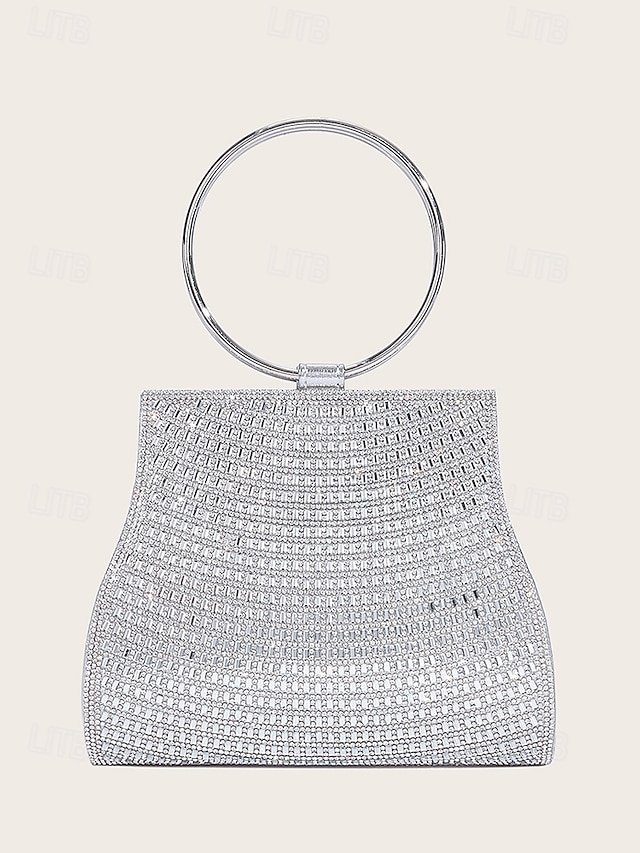 5PCS Elegant Crystal Evening Clutch with Gold Ring Handle –