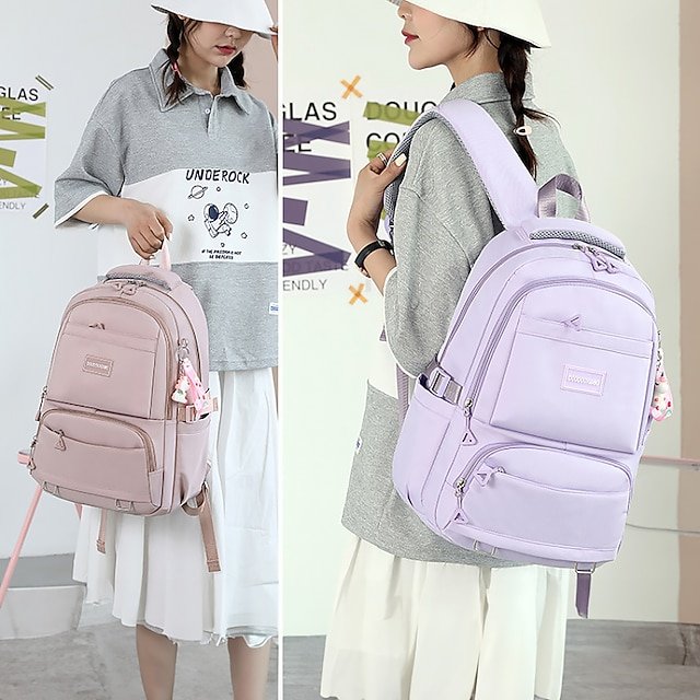 Gender: Women’s, Type: School Bag Bookbag, Commuter Backpack, Material: Nylon, Embellishment: Zipper, Pattern: Solid Color, Occasion: School, Daily, Width (cm): 30, Height (cm): 47, Function: Waterproof, Lightweight, Large Capacity, Durable, Category: Backpack,
