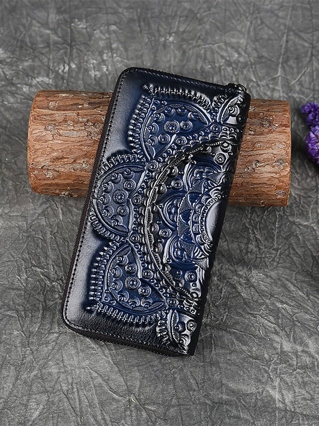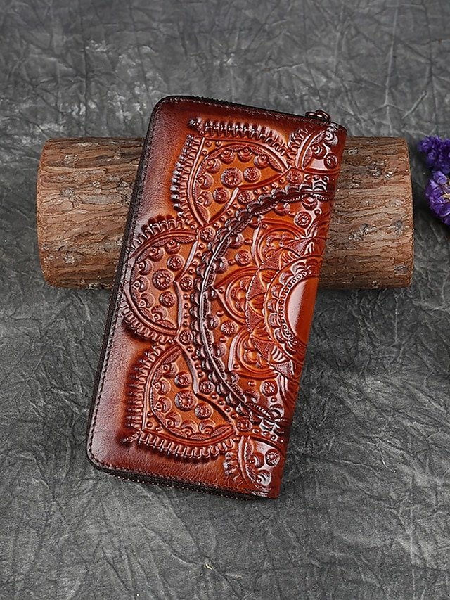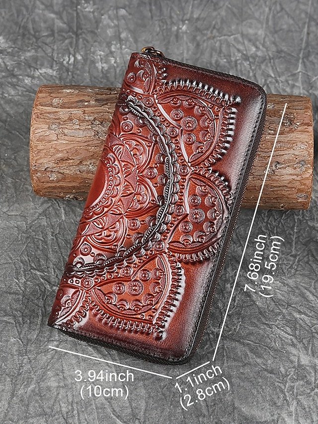 Gender: Women’s, Type: Credit Card Holder Wallet, Material: Cowhide, Leather, Embellishment: Zipper, Multiple pockets, Embossed, Pattern: Solid Color, National Totem, Color rubbing, Occasion: Shopping, Casual, Office, Width (cm): 2.8, Height (cm): 10, Length (cm): 19。5, Function: Large Capacity, Category: Wallet,