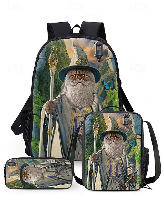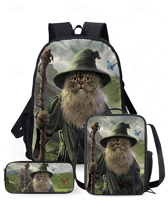 Kids’ 3-Piece Wizard Cat Backpack Set – Fantasy Cat Print