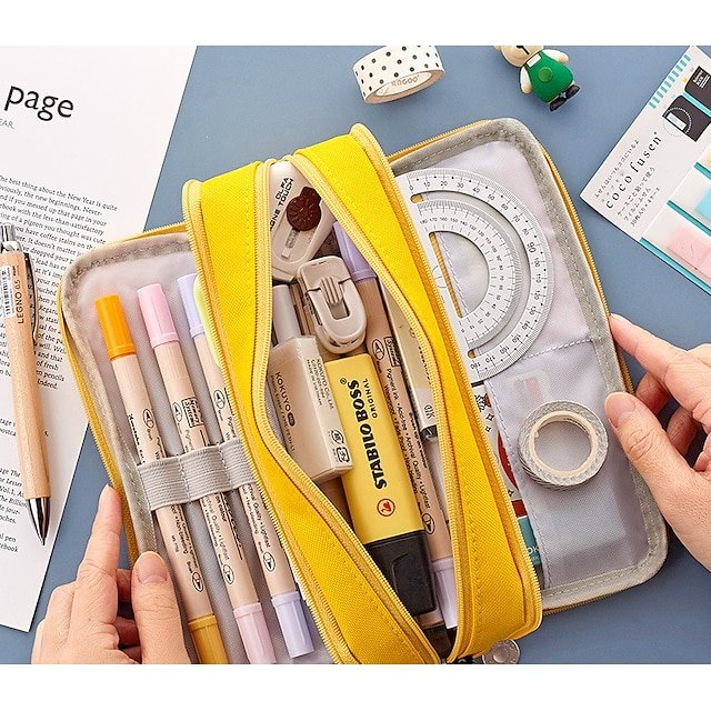 Large Capacity Pink Pencil Case Organizer – Multi-Layer Zipper