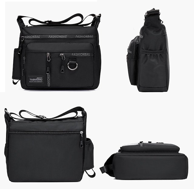 Men’s Black Multi-pocket Nylon Crossbody Messenger Bag –