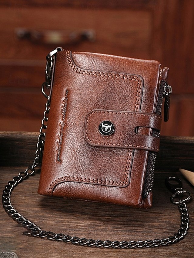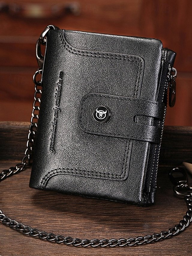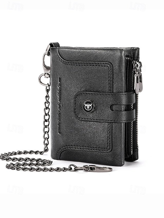 Be the first to review “Men’s Genuine Leather RFID Blocking Wallet with Chain,” Cancel reply