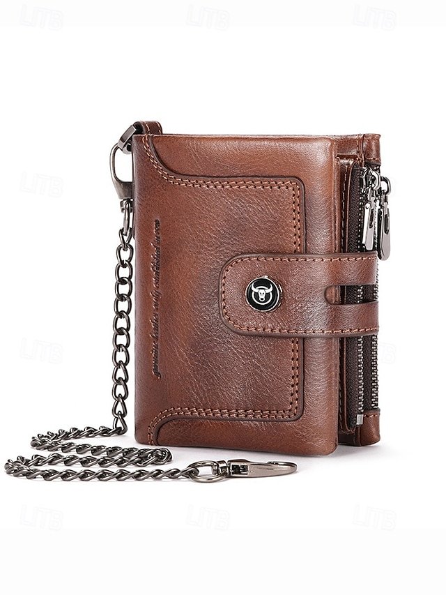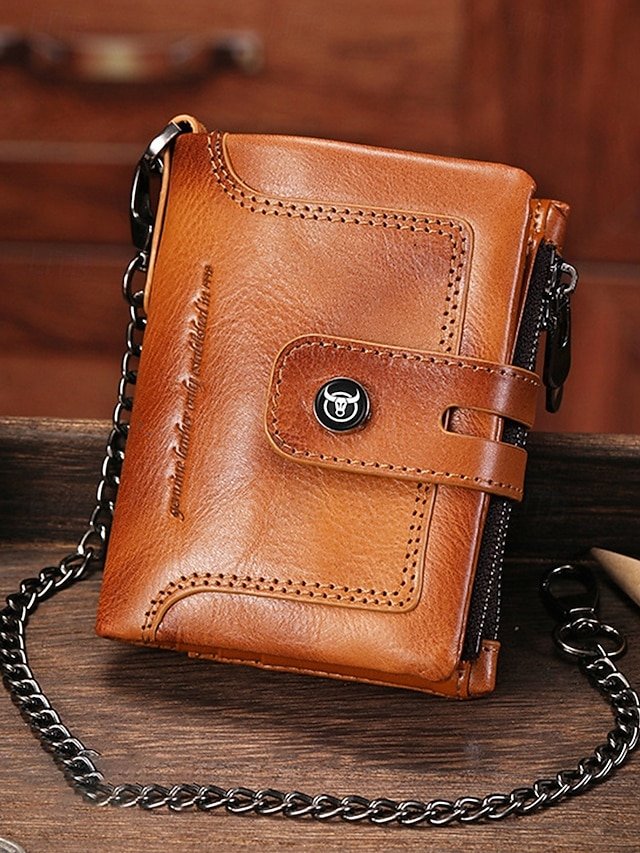 Men’s Genuine Leather RFID Blocking Wallet with Chain,