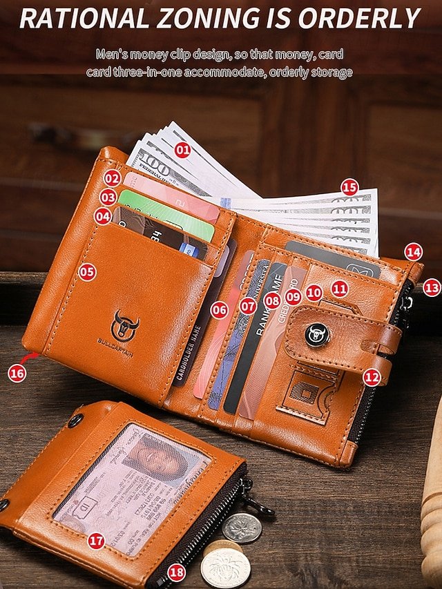 Gender: Men’s, Type: Credit Card Holder Wallet, Material: Leather, Embellishment: Zipper, Multiple pockets, Pattern: Solid Color, Adjustable strap: Non-Adjustable, Occasion: Father’s Day, Office, Casual Daily, Casual, Width (cm): 9.5, Height (cm): 12, Length (cm): 3, Function: Lightweight, Large Capacity, Durable, Category: Wallet,