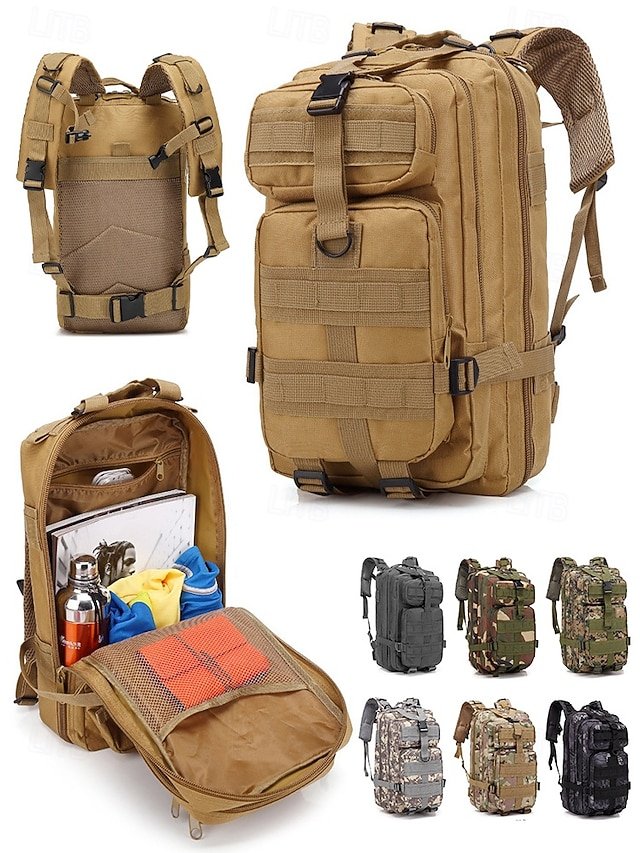 Gender: Men’s, Type: Tactical Backpack, Travel Backpack, Material: Oxford Cloth, Nylon, Embellishment: Zipper, Pattern: Solid Color, Occasion: Outdoor, Camping & Hiking, Width (cm): 25, Height (cm): 45, Length (cm): 40, Function: Large Capacity, Durable, Category: Backpack,