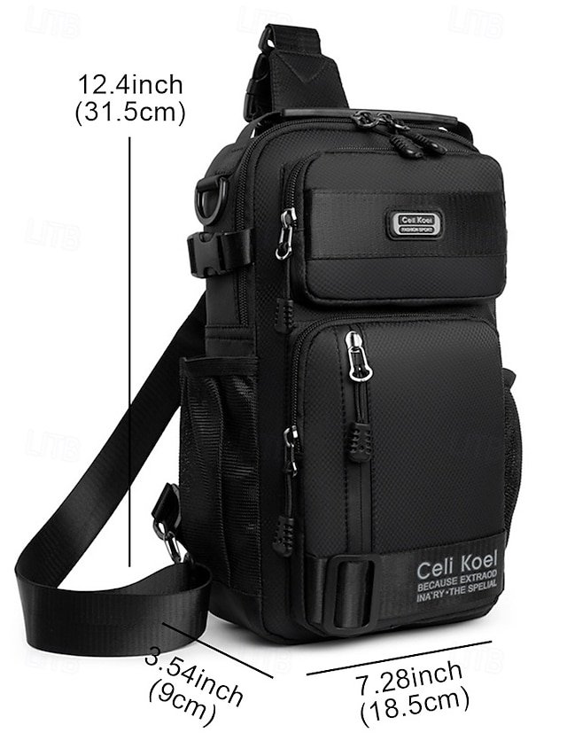 Gender: Men’s, Type: Chest Bag, Material: Nylon, Embellishment: Zipper, Multiple pockets, Pattern: Solid Color, Detachable strap: Detachable, Adjustable strap: Adjustable, Occasion: Outdoor, Casual Daily, Casual, Width (cm): 9, Height (cm): 31.5, Length (cm): 18.5, Function: Lightweight, Durable, Multi Carry, Category: Crossbody Bag,