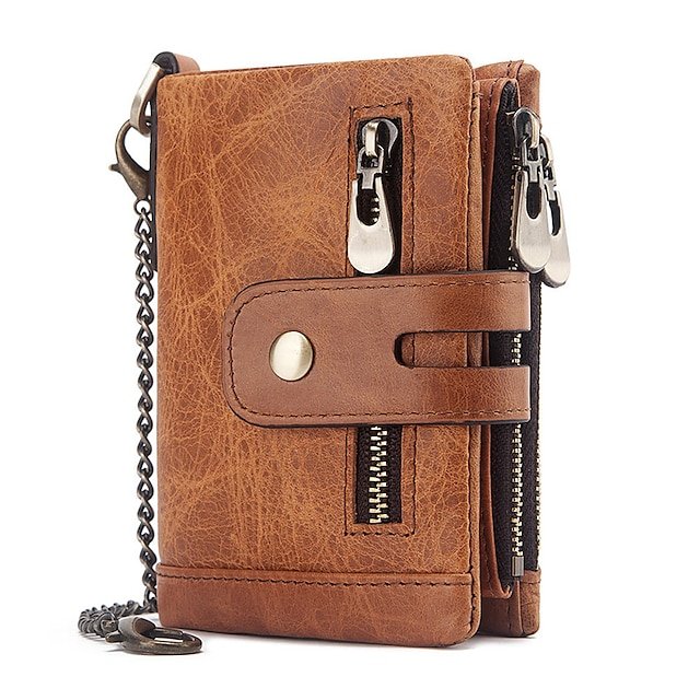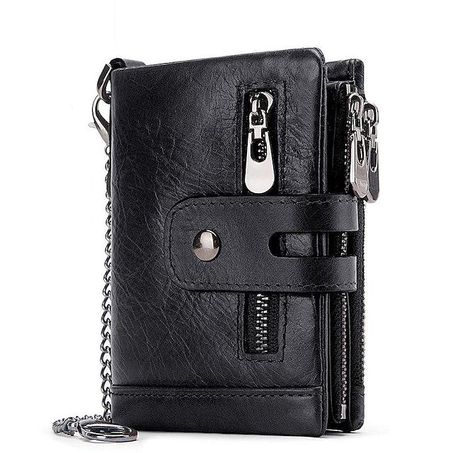 Gender: Women’s, Men’s, Type: Credit Card Holder Wallet, Material: Cowhide, Embellishment: Zipper, Chain, Pattern: Solid Color, Occasion: Shopping, Daily, Width (cm): 1, Length (cm): 9, Height (cm): 11, Function: Foldable, Large Capacity, Durable, Anti-Dust, RFID Blocking, Category: Wallet,