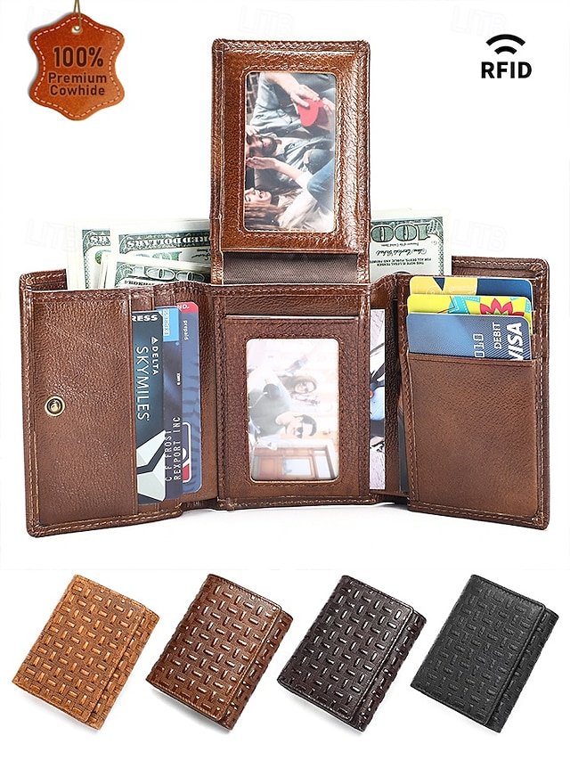 RFID Blocking Genuine Leather Wallet for Men – Trifold Design