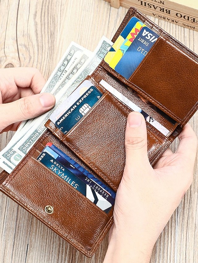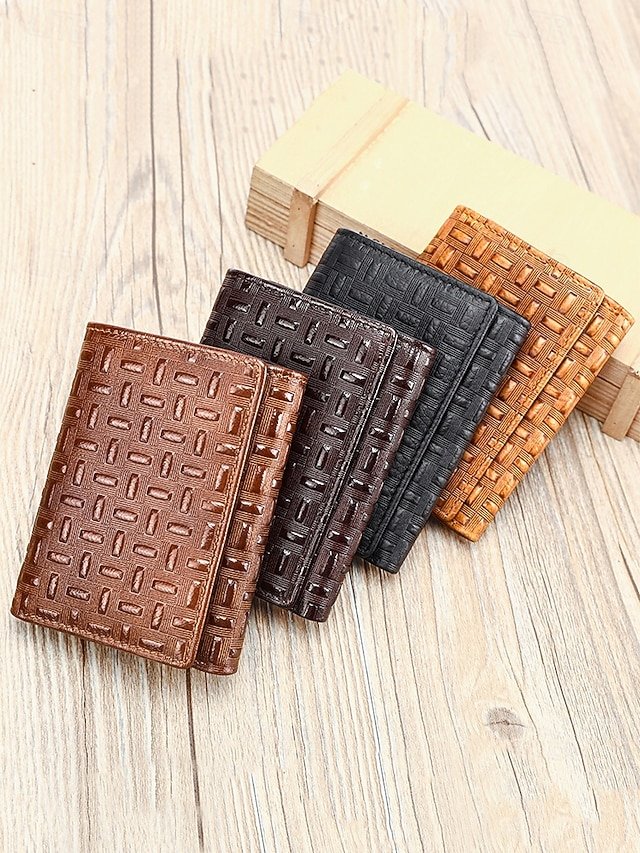 Gender: Men’s, Type: Credit Card Holder Wallet, Material: Leather, Cowhide, Embellishment: Embossed, Multiple pockets, Pattern: Color rubbing, Solid Color, Occasion: Casual Daily, Office, Width (cm): 2, Height (cm): 11, Length (cm): 8.5, Function: Large Capacity, RFID Blocking, Category: Wallet,
