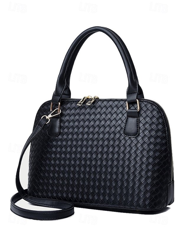 Be the first to review “Women’s 3-Piece Brown Woven Faux Leather Handbag Set –” Cancel reply