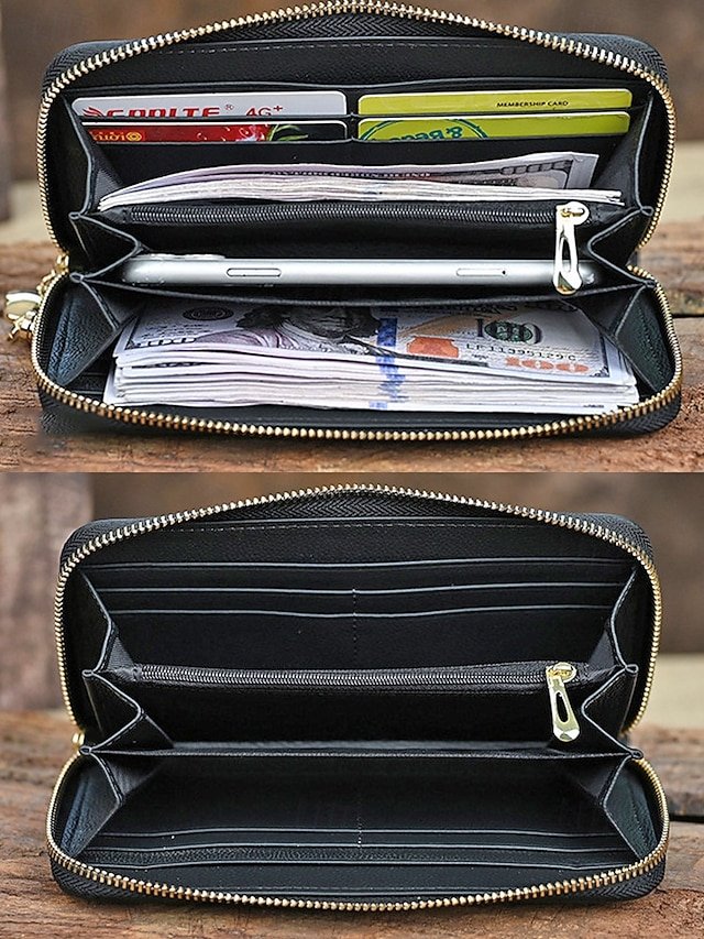 Men’s Genuine Leather Long Wallet – Vintage Bifold Clutch