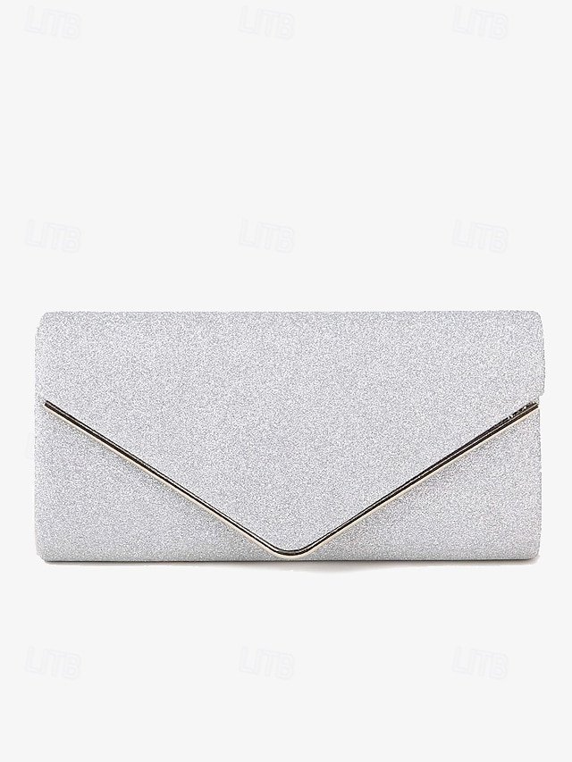 Women’s Silver Glitter Clutch, Elegant Evening Bag with