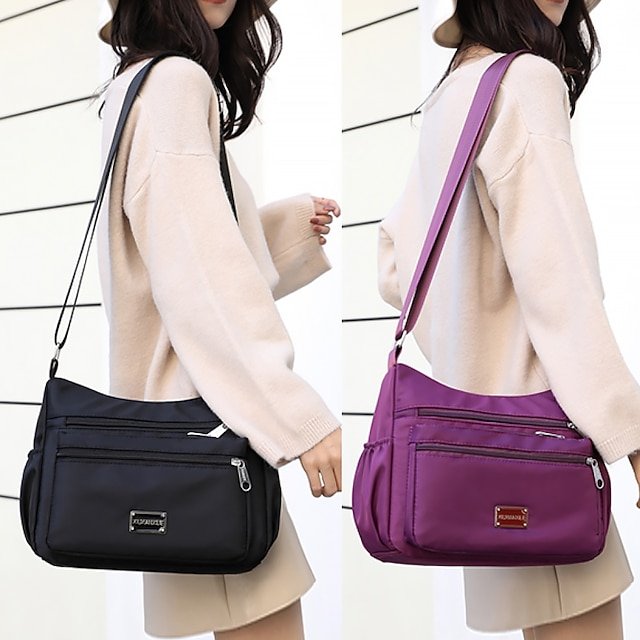 Gender: Women’s, Type: Hobo Bag, Material: Nylon, Embellishment: Zipper, Pattern: Solid Color, Occasion: Holiday, Daily, Outdoor, Width (cm): 13, Length (cm): 29, Height (cm): 24, Function: Lightweight, Large Capacity, Durable, Category: Shoulder Bag, Crossbody Bag,