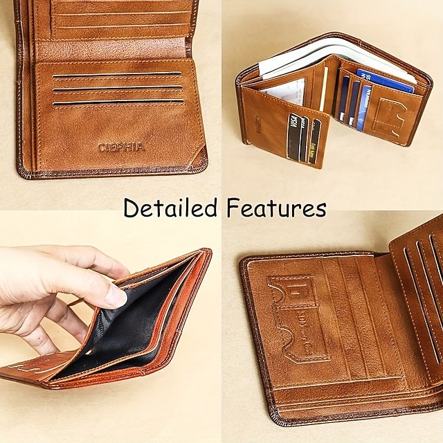 Men's RFID Blocking Cowhide Leather Bifold Wallet with