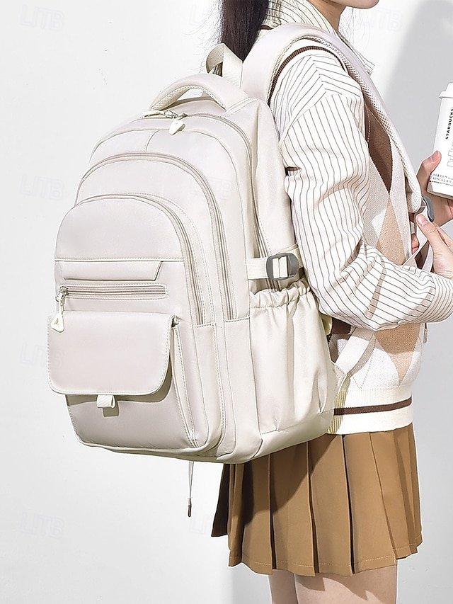 Gender: Women’s, Type: School Bag Bookbag, School Backpack Bookbag, Material: Polyester, Embellishment: Zipper, Pattern: Solid Color, Occasion: School, Daily, Width (cm): 29, Height (cm): 44, Length (cm): 40, Function: Waterproof, Large Capacity, Category: Backpack,
